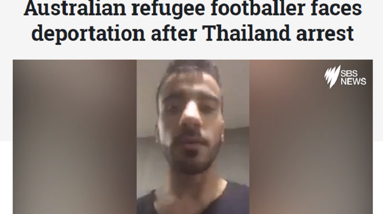 Un ancien joueur de l’équipe nationale de football de Bahreïn, réfugié politique en Australie, a été détenu lors de son passage à Bangkok et pourrait être renvoyé à Bahreïn, la Thaïlande ne reconnaissant pas la Convention de Genève sur les réfugiés.