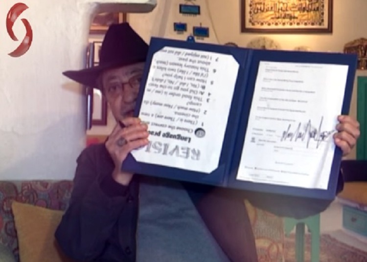 Doured Lahham, célèbre dans le monde arabe pour ses feuilletons télévisés et ses pièces de théâtre satiriques est apparu dans une vidéo en train de signer un document qui ressemble à celui que Trump a signé sur le Golan syrien.
