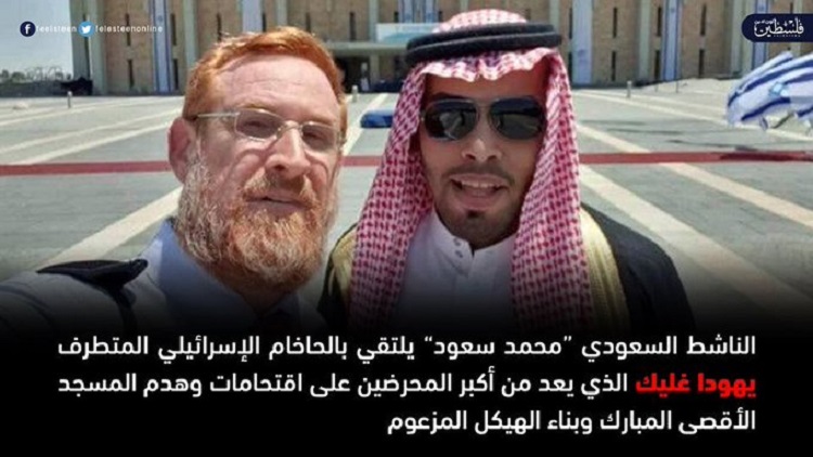 Saoud est de même apparu en photo avec le rabbin israélien Yehuda Gleek qui milite ouvertement pour la destruction de la mosquée al-Aqsa et l’édification à sa place du temple de Salomon.