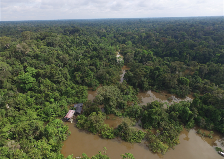 Il suffit de traverser la rivière Pariamanu pour apercevoir d’énormes étendues de forêts déboisées et des cratères de boue laissés par les mineurs.
