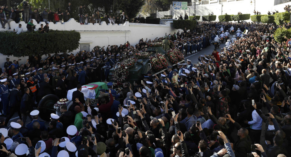 La dépouille d’Ahmed Gaïd Salah a été exposée au Palais du peuple d’Alger au début de la cérémonie des funérailles du 25 décembre pour que les Algériens puissent rendre un dernier hommage au général avant son enterrement au cimetière El-Alia, dans la banlieue est de la capitale.