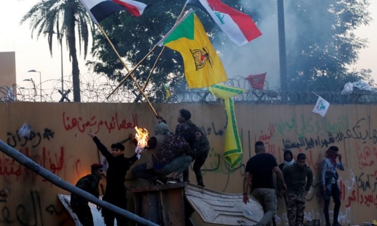 Mardi 31 décembre, c’est le cortège funéraire de ces 25 morts qui a convergé vers l’ambassade américaine à Bagdad, avant que des milliers de ses participants ne s’en prennent au bâtiment avec des béliers de fortune, des barres de fer et autres cocktails Molotov.