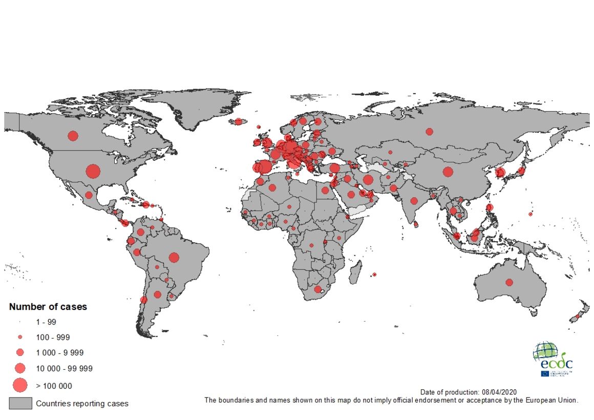 L’Espagne (146.690 cas, 14.555 décès), l’Italie (135.586, 17.127), la France (109.069, 10.328) et l’Allemagne (103.328, 1.861) sont les quatre pays comptant plus de 100.000 cas sur leur territoire. Ce nombre de cas diagnostiqués ne reflète toutefois qu’une fraction du nombre réel de contaminations, de nombreux pays ne testant plus que les cas nécessitant une prise en charge hospitalière.
