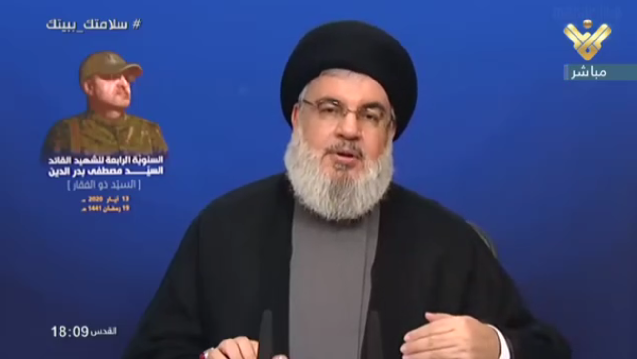 Aujourd’hui, nous commémorons le martyr de notre chef-commandant Moustafa Badreddine, en cette occasion je souhaite exprimer mes condoléances pour sa famille, sa mère, son épouse, ses filles, ses compagnons, mais aussi mes félicitations pour avoir gagné le martyre…