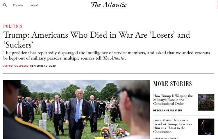 La Maison Blanche et Donald Trump ont catégoriquement démenti jeudi que le président ait qualifié de « losers » et de « crétins » des soldats américains morts pendant la Première Guerre mondiale, comme l’affirme le magazine The Atlantic.
