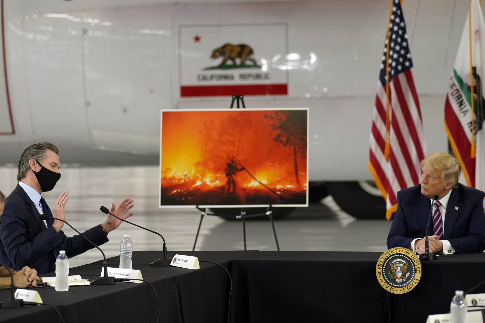 Lors du même déplacement, le milliardaire républicain, qui tient régulièrement des propos climato-sceptiques, a aussi balayé les inquiétudes de responsables californiens sur le climat, assurant : « ça finira par se refroidir ».