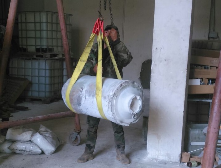 Ce jeudi L’armée syrienne a désamorcé un énorme engin piégé pesant 500 kg dans l’usine de savon située à Boustane al-Qasr. (Photo à gauche)