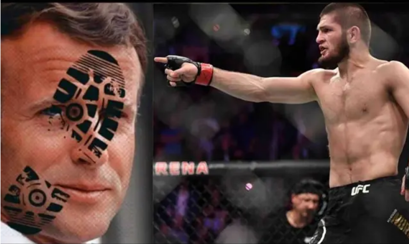 Originaire du Daguestan, une république de Russie à majorité musulmane, Khabib Nurmagomedov a publié sur son compte Instagram, suivi par 25 millions de personnes, une photographie du dirigeant français avec une empreinte de chaussure dessinée sur le visage.