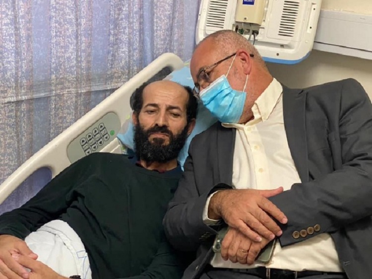 Dans une vidéo publiée sur Facebook par le député palestinien de la Knesset Ahmed Tibi, on voit le prisonnier faire le « V » de la victoire depuis son lit d’hôpital, où il est entouré de son épouse et de députés palestiniens de la Knesset pour annoncer la fin de sa grève.