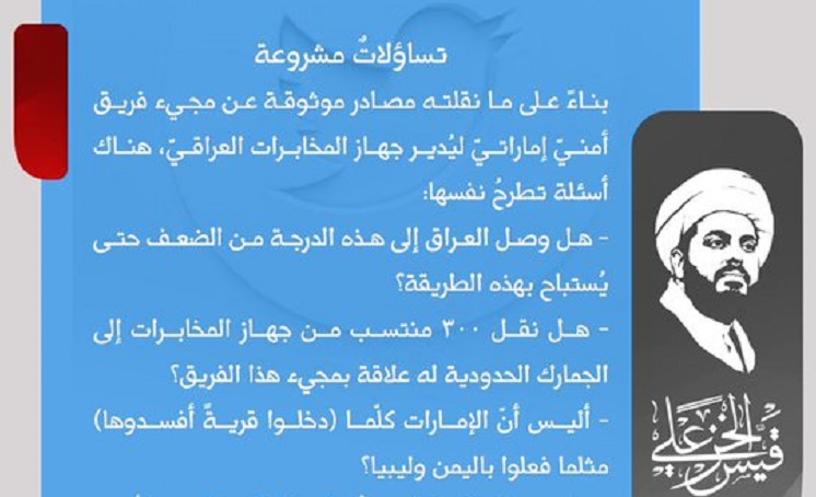 C’est le secrétaire général du mouvement Brigades Ahl al-Haq, cheikh Qaïs Khazaali qui a révélé le dimanche 14 mars qu’une équipe émiratie avait rejoint les rangs des services de renseignement irakiens.