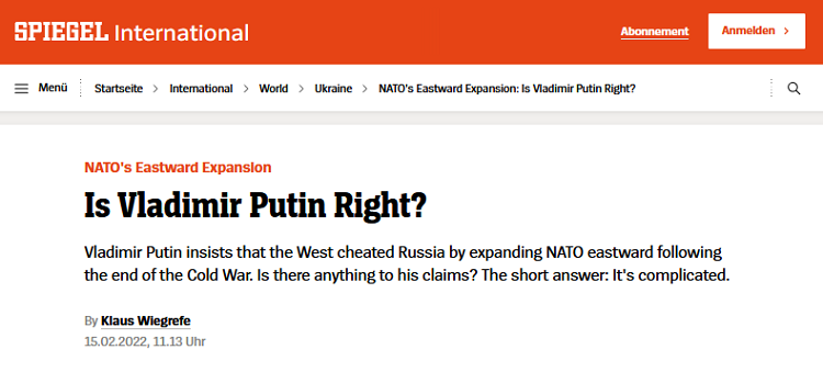 Dans un article paru le 18 février, le Spiegel évoque un document d’archives contenant des informations sur le principe de non-expansion de l’Alliance à l’est.