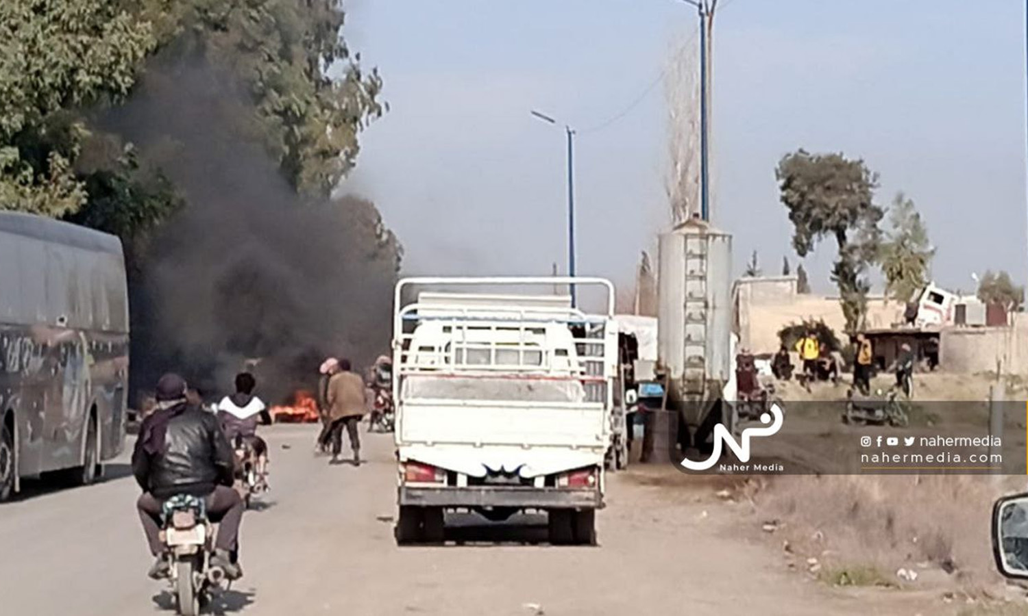 Les manifestants ont bloqué la route principale dans la région d’Al-Maamel et le village de Maaiziliya avec des pneus en caoutchouc enflammés, interdisant le passage d’un certain nombre de camions et de citernes transportant le pétrole pillé des gisements de Deir Ezzor vers le gouvernorat de Hassaké, avant de l’acheminer en contrebande à l’extérieur du pays.