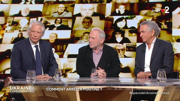 Lors d’une émission spéciale intitulée Ukraine : la guerre en Europe diffusée dans la soirée du 24 février sur France 2, l’ancien Premier ministre Dominique de Villepin s’est ouvertement opposé à Bernard-Henri Lévy, ce dernier souhaitant une réponse militaire occidentale en Ukraine.