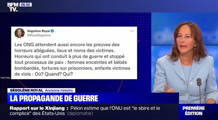 Il a par ailleurs estimé que les crimes de guerre étaient «documentés» et que le nier était «une insulte aux assassinés, aux violées, aux torturés», allant jusqu’à assimiler les propos de Ségolène Royale à «de la propagande».