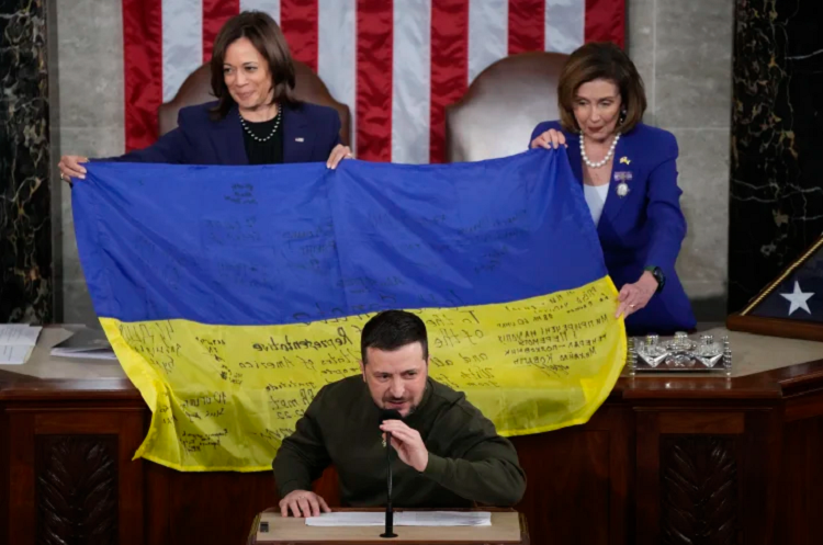 Couleur bleu, couleur jaune, drapeaux, et vivats: les élus du Congrès américain ont accueilli, le mercredi, avec chaleur le président ukrainien Volodymyr Zelensky, venu prononcer un discours historique devant eux à Washington.