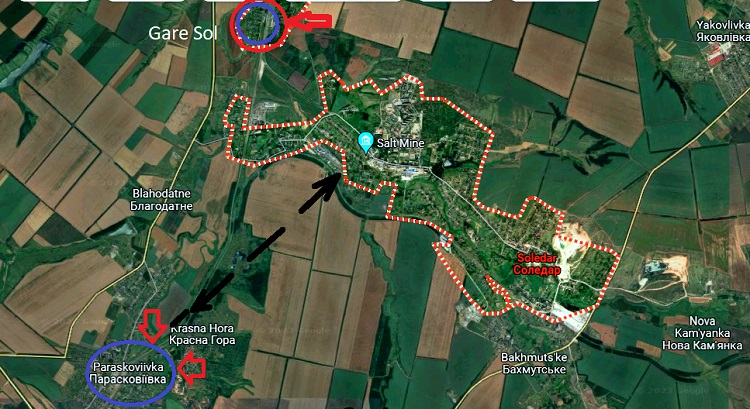 Selon l’expert militaire roumain Valentin Vasilescu, ce petit village possède une mine de sel en son centre, qui est reliée à la mine principale de Soledar par un réseau de tunnels. Les Russes veulent l’utiliser comme dépôt d’armes et de munitions. Si les Russes n’occupent pas Parascoviivka, ils peuvent se réveiller un beau matin avec des soldats ukrainiens dans le centre de Soledar, qui pourraient y arriver en empruntant les voies souterraines.