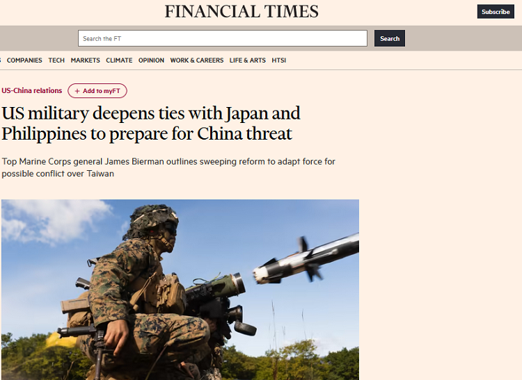 Dans une interview d’une franchise remarquable accordée lundi au Financial Times, le plus haut général des Marines américains au Japon a déclaré que les succès remportés par les États-Unis et l’OTAN contre la Russie en Ukraine étaient le fruit d’une planification et de préparatifs préalables – afin de «préparer le terrain » pour la guerre, dans le jargon militaire. C’est exactement ce que fait le Pentagone au Japon et en Asie, a-t-il expliqué, pour se préparer à un conflit avec la Chine au sujet de Taïwan.