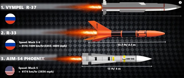 La portée de lancement maximale du R-37M est d’environ 300 kilomètres (186 miles); l’altitude des cibles potentielles est comprise entre 30 mètres (98 pieds) et 25 kilomètres, tandis que la vitesse de vol maximale du missile est six fois la vitesse du son, ce qui le rend essentiellement hypersonique.