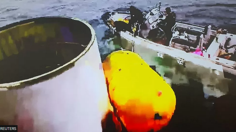 L’armée sud-coréenne a publié des images des débris du satellite et de son lanceur qu’elle a annoncé avoir repêché en mer Jaune, à 200 km de l’île d’Eocheong, loin au large de la côte occidentale de la péninsule.