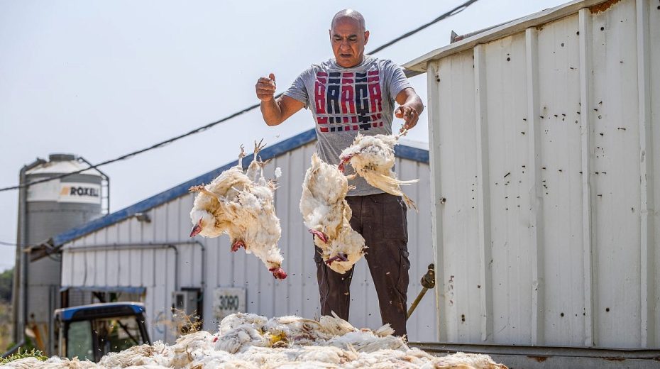 Selon la télévision israélienne, ce colon qui possède un poulailler a perdu sa volaille en raison de la vague de chaleur.