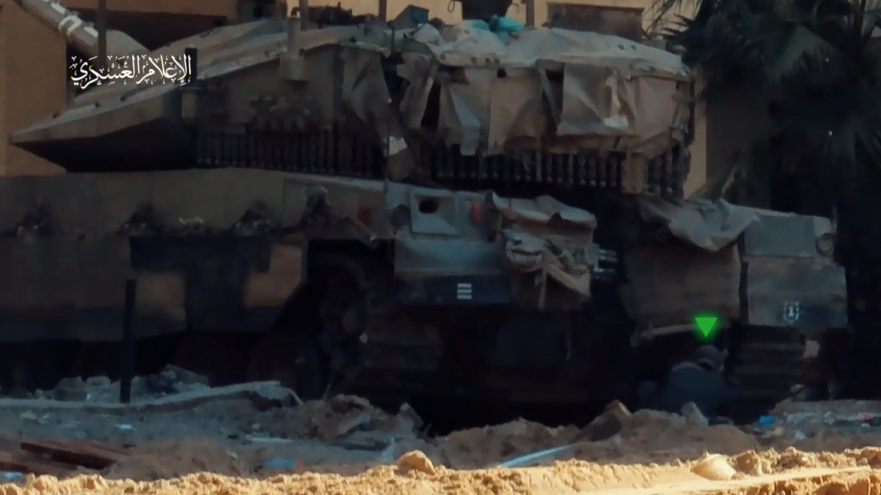 La vidéo montre des combattants d’Al-Qassam faisant exploser des véhicules militaires, tirant sur d’autres soldats et faisant exploser un char israélien de distance zéro.