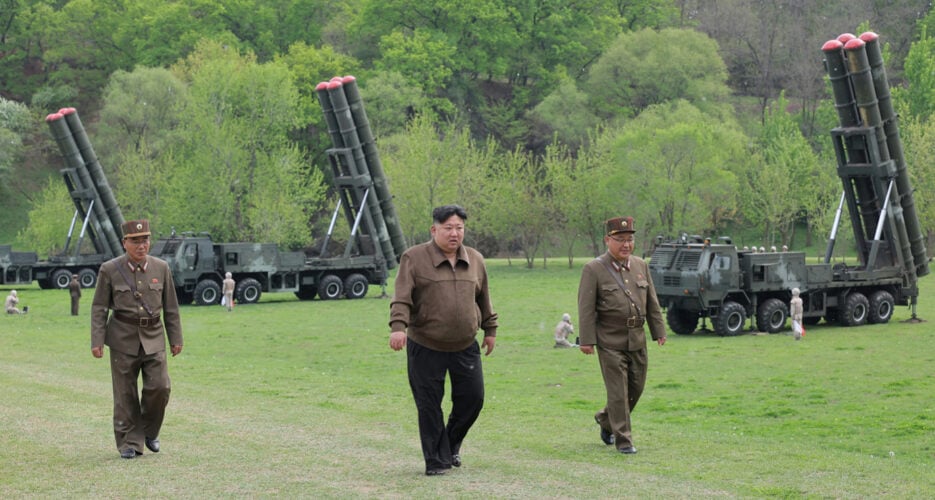 Kim Jong Un « a dirigé un exercice tactique combiné simulant une contre-attaque nucléaire impliquant des lance-roquettes multiples de très grande taille », a indiqué KCNA.
