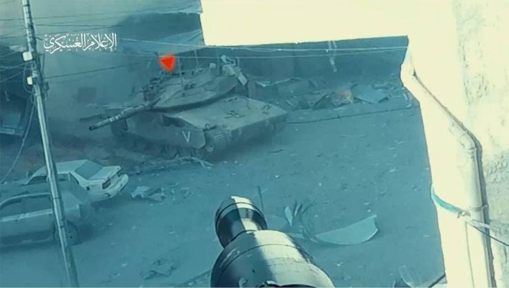 Dans la même zone, les Brigades Al-Qassam a ciblé un char israélien Merkava 4 avec un engin artisanal Shawaz . Elles ont également visé, avec le même type d’engin, un char israélien Merkava dans le quartier d’Al-Qasayeb et deux chars Merkava avec deux obus Al-Yassin 105 , dans la rue Al-Ajarma.