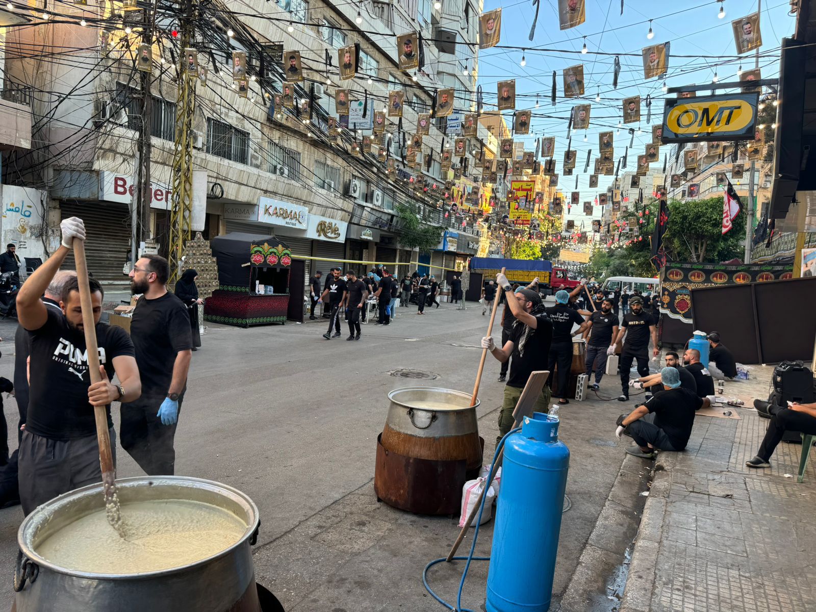 Une nouveauté depuis quelques années mais qui a aussi connu une ampleur sans précédent : les madayef. Ce mot est issu du radical diafa qui veut dire l’hospitalité. Il s’agit de tentes érigées au bord des routes, dans des villes et des villages libanais où sont offerts gratuitement des plats cuisinés sur place, « pour l’amour de l’imam Hussein ». Le plus souvent, c’est une spécificité qui est offerte pendant l’Achoura : la Harissa qui est cuisinée avec du blé, de la viande ou du poulet. Mais aussi du riz kabseh, des manakiche (pizza au fromage ou au thym) et autres.