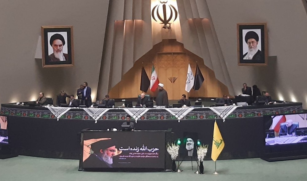 M.Qalibaf se prononçait lors de la séance publique du Conseil de la Choura (Parlement) pour discuter des répercussions de l’assassinat de Sayed Nasrallah par l’occupation israélienne, au milieu des acclamations des députés en faveur de la résistance. Une photo du martyr Sayed Nasrallah a également été installée au sein du Parlement iranien.