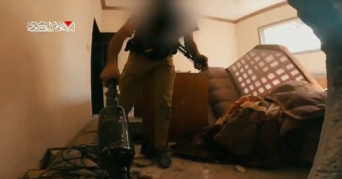 Les Brigades Al-Qassam ont ciblé une force israélienne composée de 7 soldats à l’intérieur d’une maison à Beit Lahia, au nord de la bande de Gaza, avec un obus TBG et les ont achevés à distance avec des mitrailleuses et des grenades.