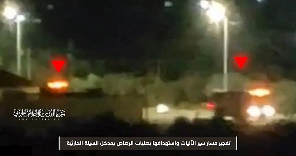 Les combattants ont piégé une force à pied israélienne dans une embuscade complexe à proximité de l’axe Hashshashin. Après l’arrivée d’une deuxième force sur le site de l’embuscade, les brigades ont fait exploser un engin explosif et ont inondé la force de balles, causant des victimes directes dans ses rangs.