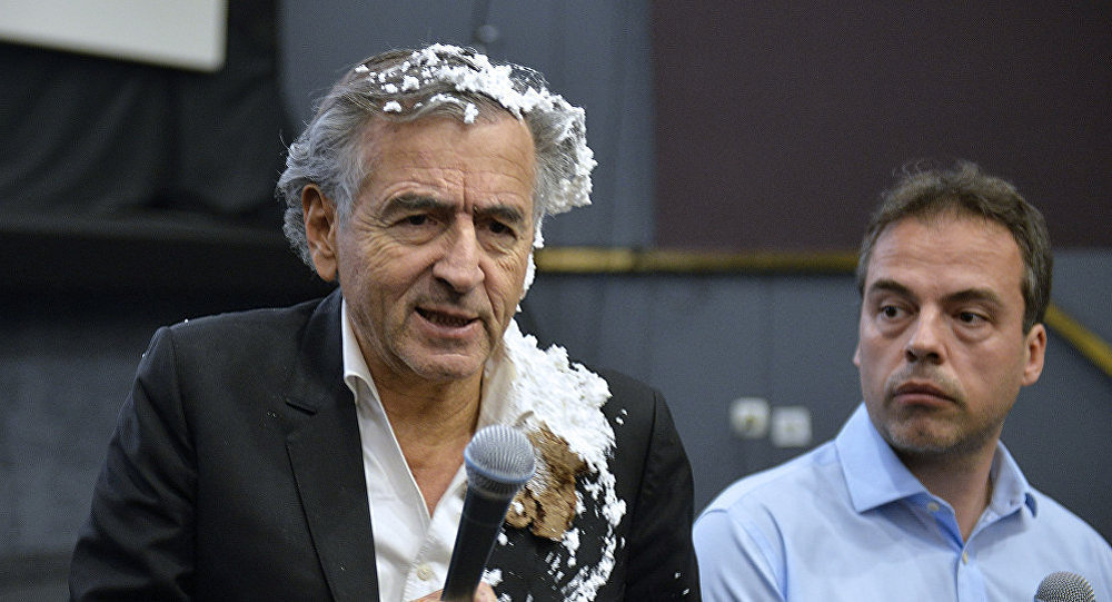 En pleine intervention à un festival de film documentaire à Belgrade, le militant franco-sioniste Bernard-Henri Lévy a été attaqué… à coups de tarte à la crème.
