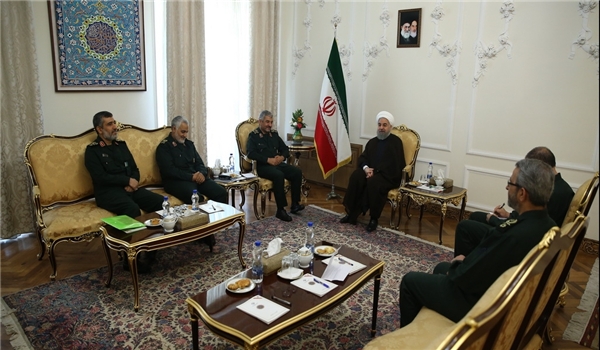 Les divers commandants en chef des Gardiens de la Révolution islamique, ont présenté au président Rohani des explications sur leurs activités , sur l’état de préparation et d’alerte des forces des Gardiens ».