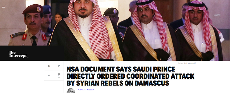 The Intercept révèle que les Saoudiens ont dès le début misé sur le renversement du président syrien Bachar al-Assad et c’est le prince Salmane Ben Sultane qui suivait de près la guerre contre la Syrie en tant que responsable des renseignements avant d’être promu au poste de vice-ministre de la Défense en 2013.