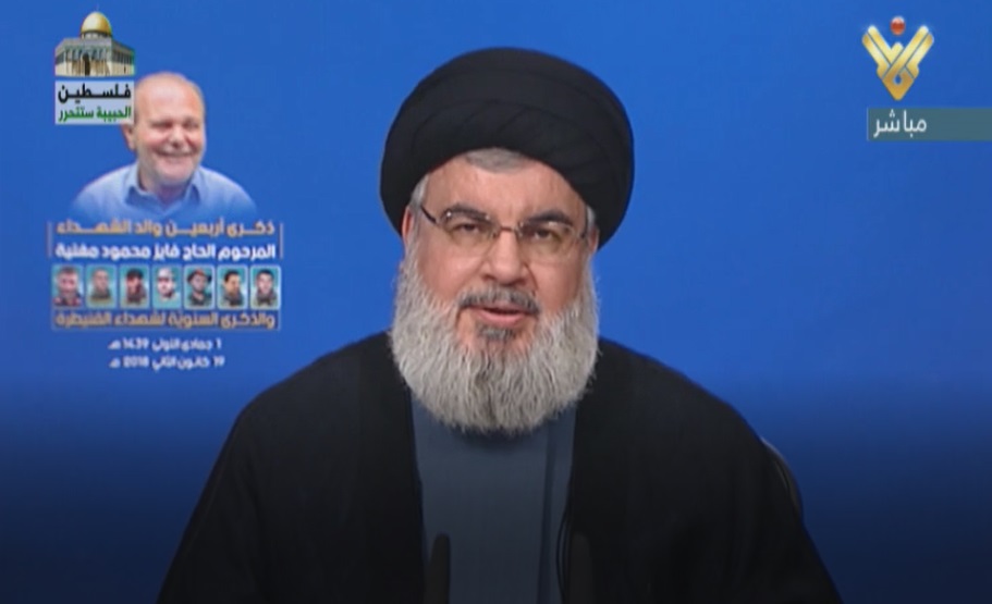 Le chef du Hezbollah a tenu ces propos lors d’un discours prononcé ce vendredi 19 janvier, lors d’une cérémonie organisée dans la banlieue sud de Beyrouth, à l’occasion du quarantième jour du décès de Fayez Moughnieh, père du martyr -commandant en chef de la résistance islamique Imad Moughnieh et la commomération annuelle des martyrs du Quneitra.