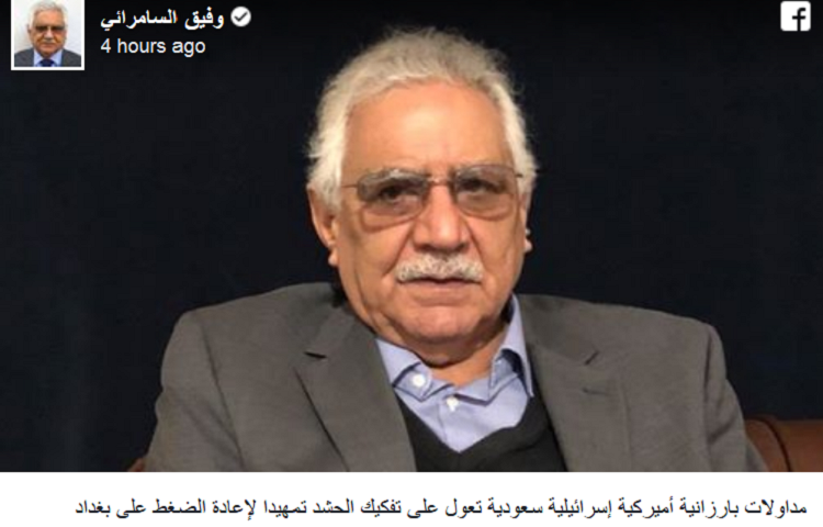 L’ancien conseiller à la présidence irakienne Wafic Samerrai a révélé que des tractations ont lieu entre les Etats-Unis, Israël et l’Arabie saoudite avec le président du Kurdistan israélien Massoud Barazani destinées à démanteler les forces populaires volontaires du Hachd al-Chaabi et de faire pression du Bagdad, jusqu’à l’obtention de la séparation du Kurdistan.