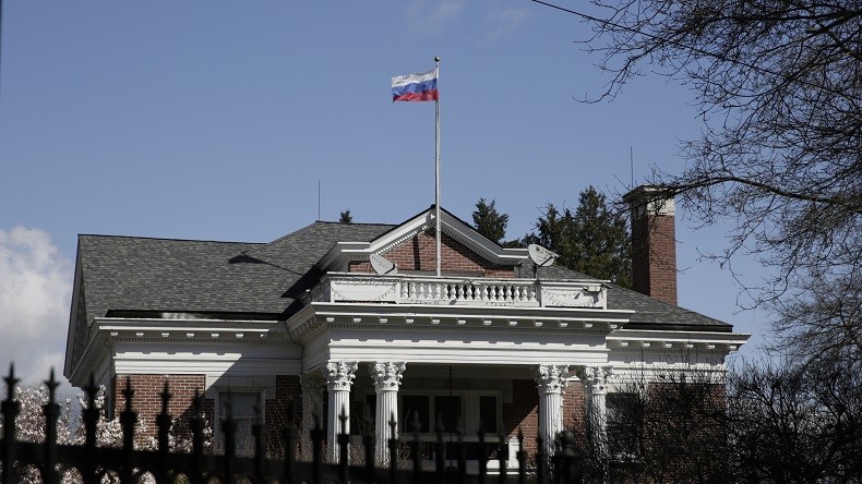 Sur Twitter, l’ambassade russe à Washington a diffusé des images montrant plusieurs individus en train de pénétrer dans la représentation consulaire russe.