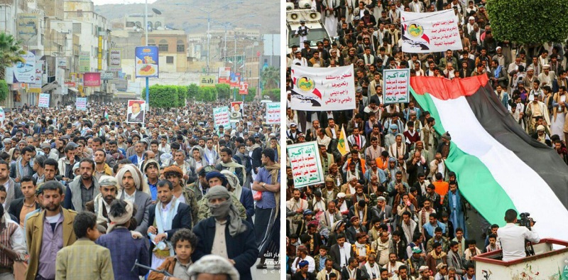 « Cette manifestation aujourd’hui vise à affirmer que la cause palestinienne est notre cause première et pour rejeter totalement les décisions de Trump », a déclaré Mohamad-Ali Al-Houthi, le président du Haut-Comité révolutionnaire.