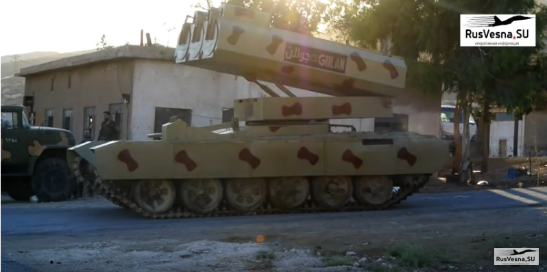 Installé sur un châssis de char T-72, un nouveau système de roquettes vraisemblablement baptisé Golan-1000 aurait été mis en service par la 4e division blindée de l’armée syrienne, selon des médias russes.
