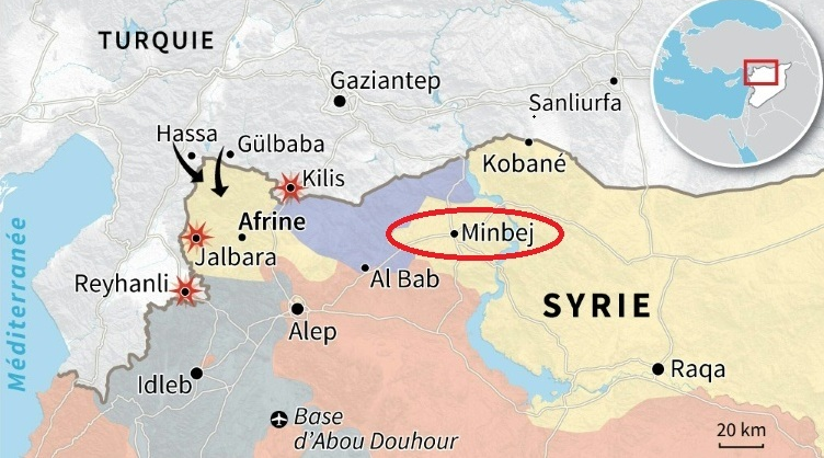 Les Etats-Unis sont présents militairement à Minbej, où ils fournissent une assistance aux YPG pour occuper le nord syrien, au grand dam d’Ankara.