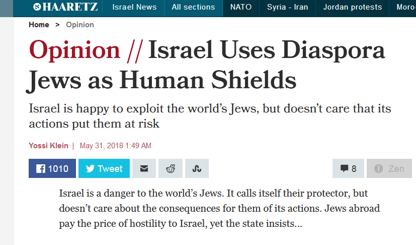 Les effets sur les Juifs d’outre-mer ne font pas partie des calculs militaires d’Israël. Ils feront ce qu’ils ont décidé de faire même si ça leur fait du mal. Mais cela ne les empêchera pas de prétendre les représenter, de parler en leur nom et de les utiliser comme otages. Ce sont des boucliers humains. Votre loyauté envers votre judaïsme, disent-ils, vient avant votre loyauté envers votre patrie.