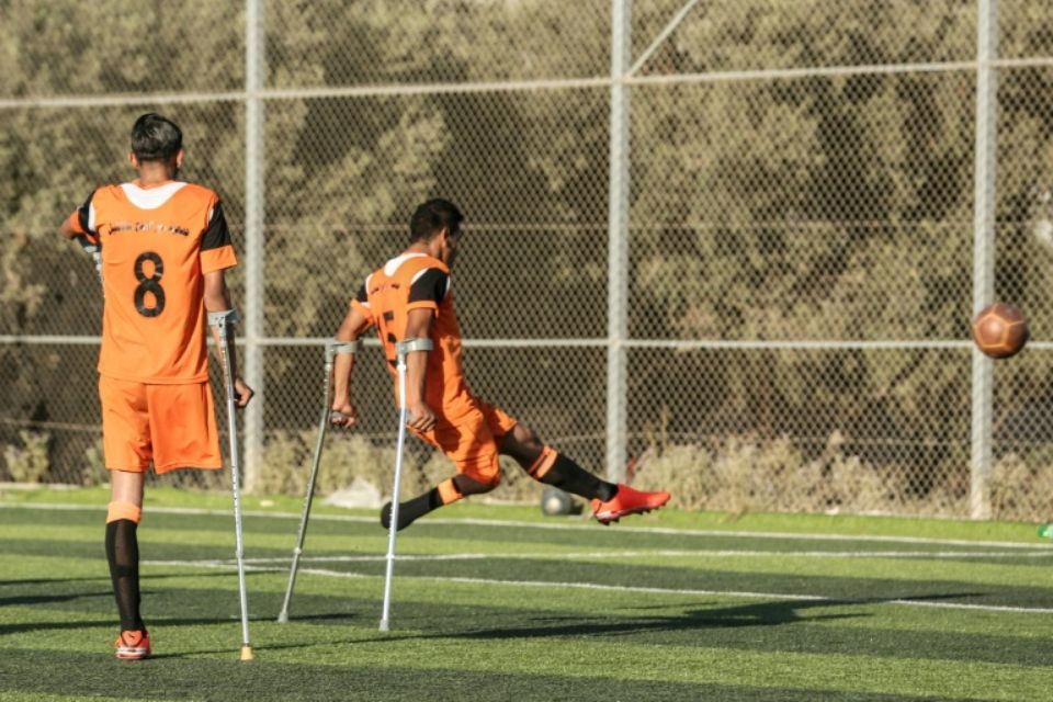 Au coup de sifflet, crampons au pied et maillots orange fluo, les joueurs s’élancent sur le terrain en gazon artificiel de Deir el-Balah, dans le centre de la bande de Gaza, appuyés sur leurs béquilles en métal.