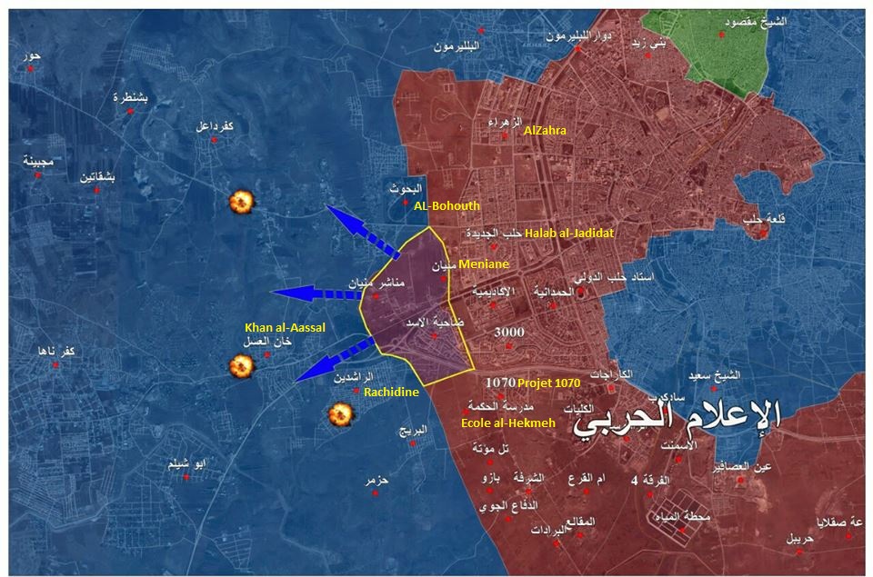 « Des accrochages violents se déroulent entre l’armée syrienne et des groupes de Jaïsh al-Fateh dans les périphéries du quartier Rachidine à l’ouest d’Alep, au moment ou les miliciens
