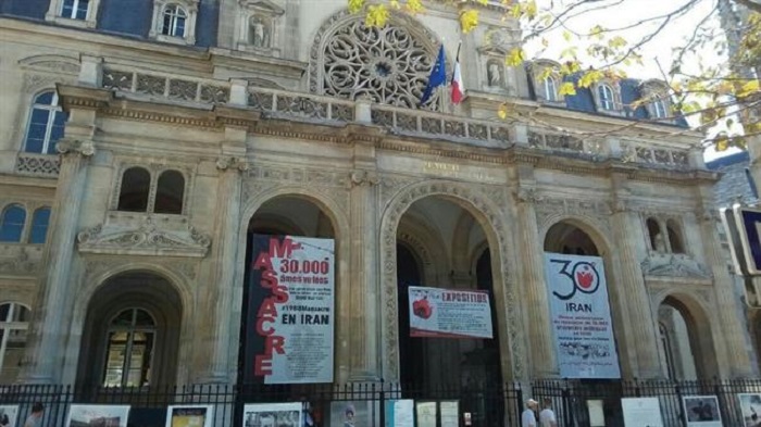 En signe de soutien au groupuscule terroriste des Monafeghines (Moudjahidines du peuple, NDLR), la mairie du 1er arrondissement de Paris a installé les pancartes anti-iraniennes de cette organisation terroriste sur la façade de son bâtiment.
